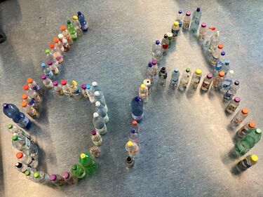 Im Kunstunterricht ließ sich die Klasse von der Skulpturengruppe „57 Pinguine“ des Künstlers Stephan Balkenhol inspirieren und gestaltete 29 eigene Pinguin-Plastiken aus PET-Flaschen, Zeitungspapier und Kleister.